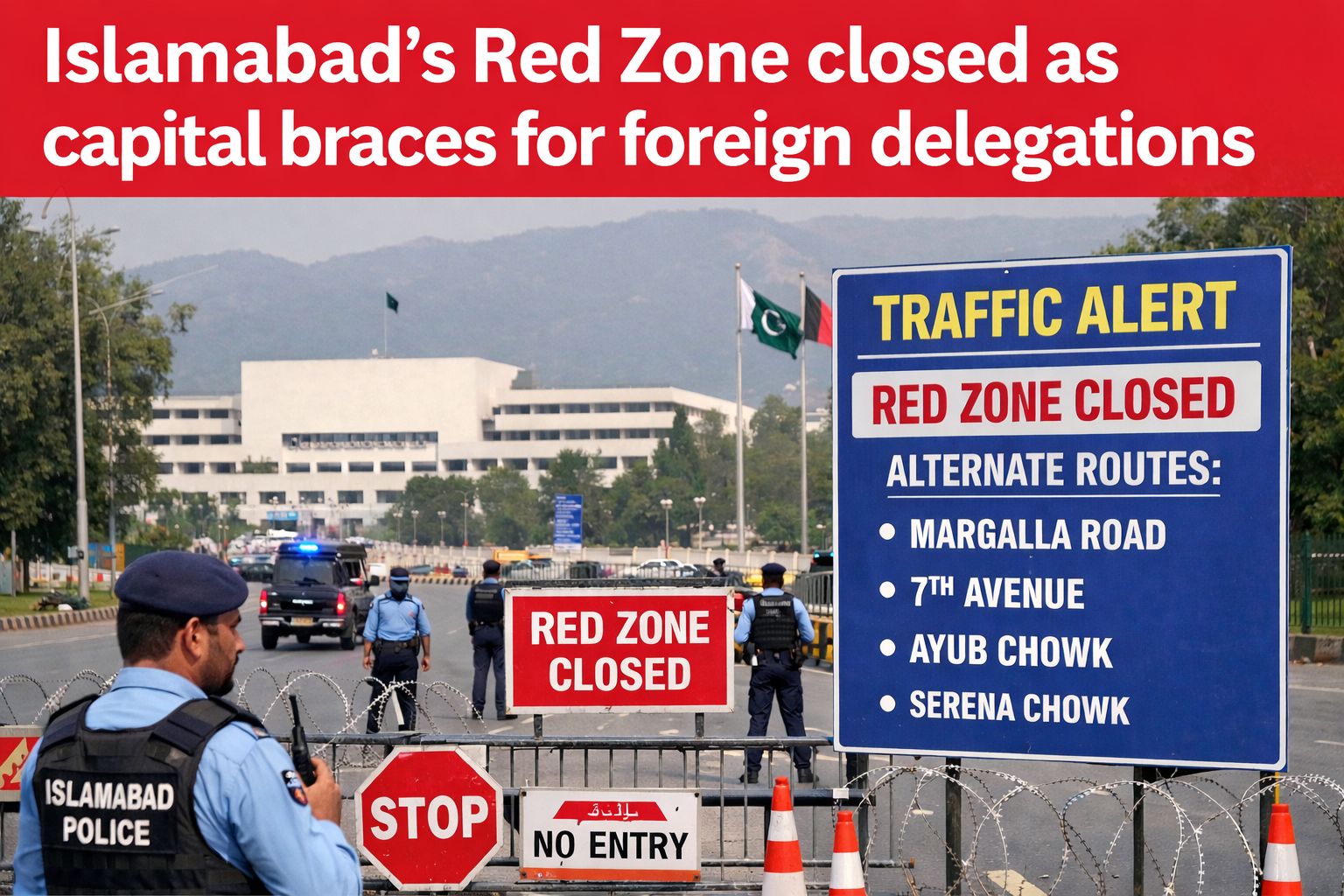 Traffic in Islamabad’s high-security Red Zone was temporarily suspended as authorities prepared to receive foreign delegations, signaling heightened security across key government areas. Police implemented strict entry restrictions while deploying personnel at major checkpoints to ensure smooth operations and safety. To minimize disruption for residents, alternative traffic routes were announced and actively managed throughout the city. The move reflects the importance of the visit, with officials aiming to maintain both security and order during the high-level engagements. Commuters have been advised to plan ahead and follow designated diversions to avoid delays.