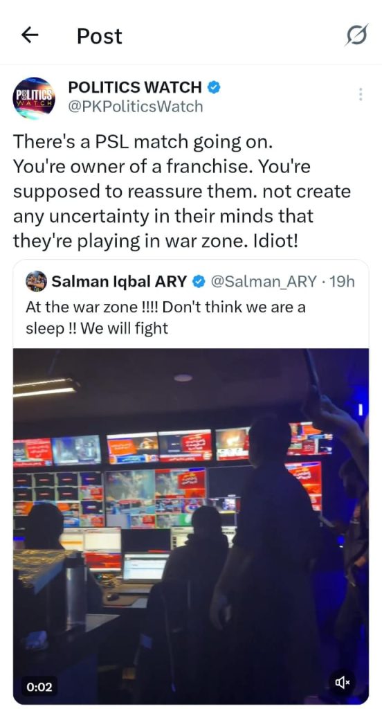 As the owner of Karachi Kings, Salman Iqbal holds a prominent position not just within his franchise but across the broader Pakistan Super League (PSL) ecosystem. His recent tweet, comparing Pakistan to a “war zone”, is deeply concerning. Such statements can alarm foreign players, sponsors, and international audiences, creating an impression of instability and conflict within Pakistan and sports landscape. At a time when PSL is striving to build its credibility as a world-class league, remarks like these risk damaging the brand’s reputation and undermining efforts to position Pakistan as a safe and welcoming destination for global sports events.