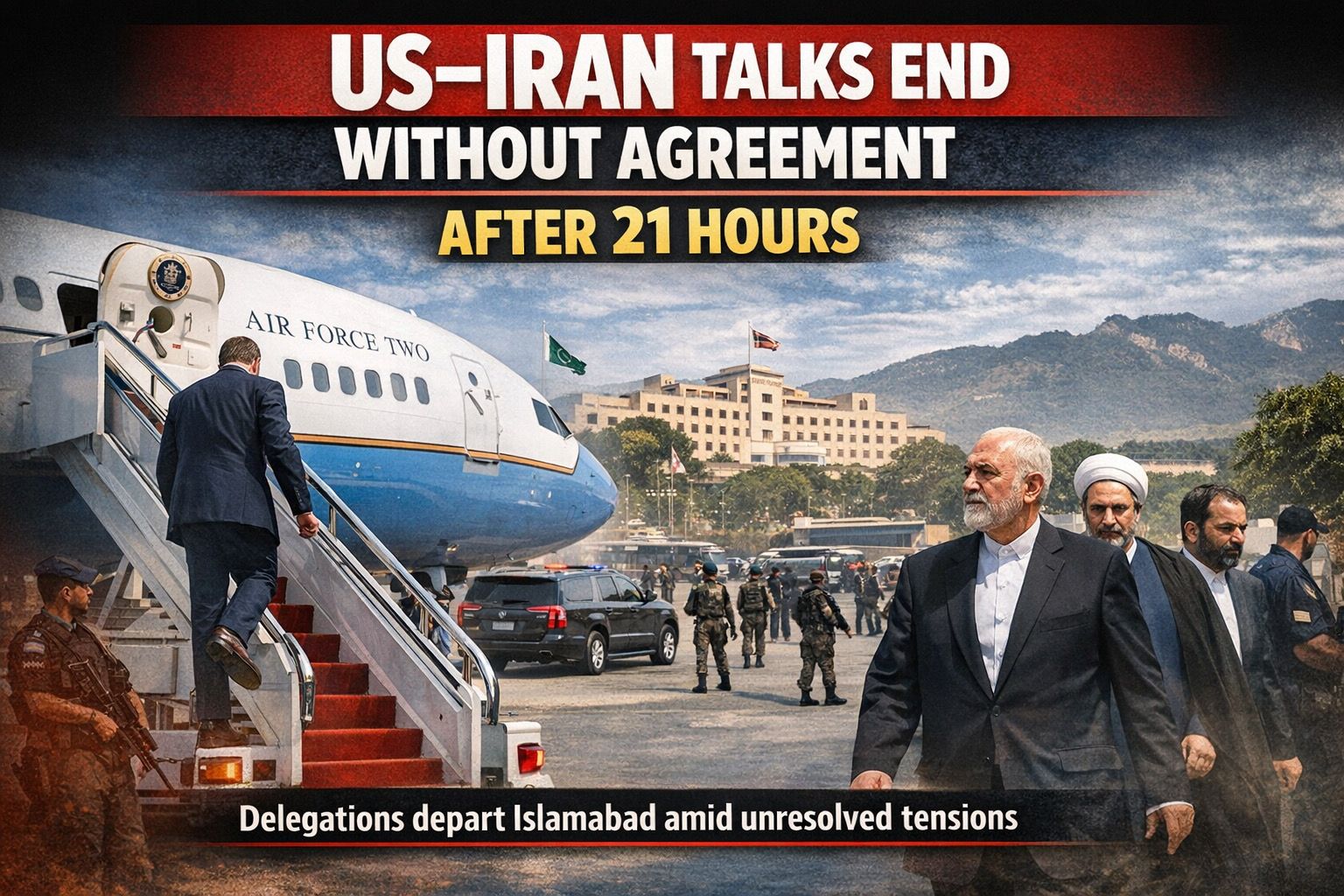 After nearly 21 hours of intense, high-level negotiations in Islamabad, delegations from the United States and Iran concluded talks without reaching any agreement. The discussions were aimed at easing long-standing tensions, particularly over nuclear issues and regional security concerns. Despite extended dialogue and diplomatic efforts, both sides remained divided on key demands and conditions. Officials described the talks as “constructive” but acknowledged that significant gaps still exist. The departure of both delegations on Sunday morning highlights the challenges in achieving a breakthrough. The outcome has raised concerns about the future of diplomatic engagement between the two nations. Analysts believe further negotiations may still take place, but progress is expected to be slow and uncertain.